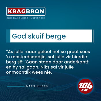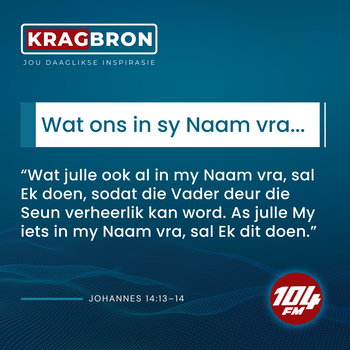 Daagliks het ons 'n inspirasie boodskap wat aansluit by ons Kragbron teksvers om jou te inspireer.
