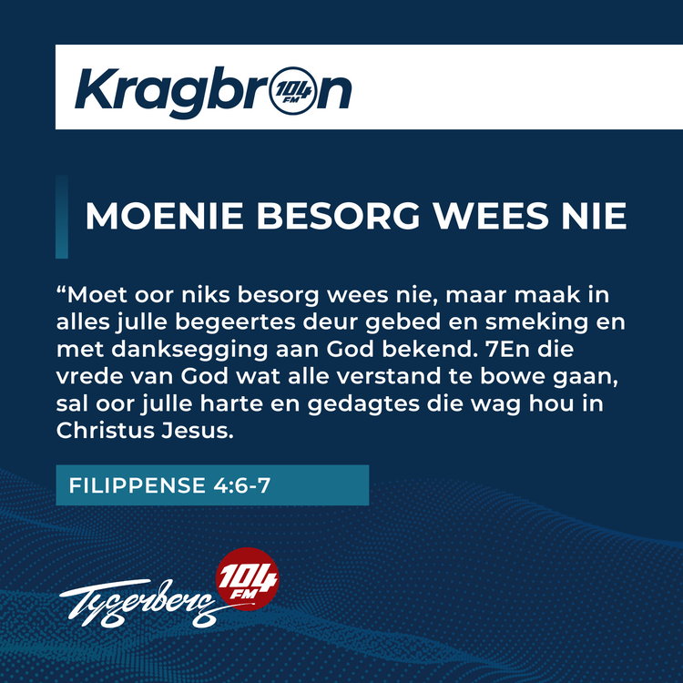 Daagliks het ons 'n inspirasie boodskap wat aansluit by ons Kragbron teksvers om jou te inspireer.