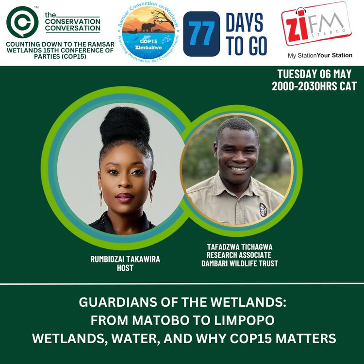 This week Rumbi discusses Guardians of the Wetlands. From Matobo to Limpopo, Wetlands, Water and why COP15 matters. Her guest is Research Associate of Dambari Wildlife Trust Tafadzwa Tichagwa. Join the conversation with Rumbi Takawira every week on Tuesdays from 20:00pm to 20:30pm as she discusses the latest in conservation efforts and environmental issues and sustainable solutions only on ZiFM Stereo